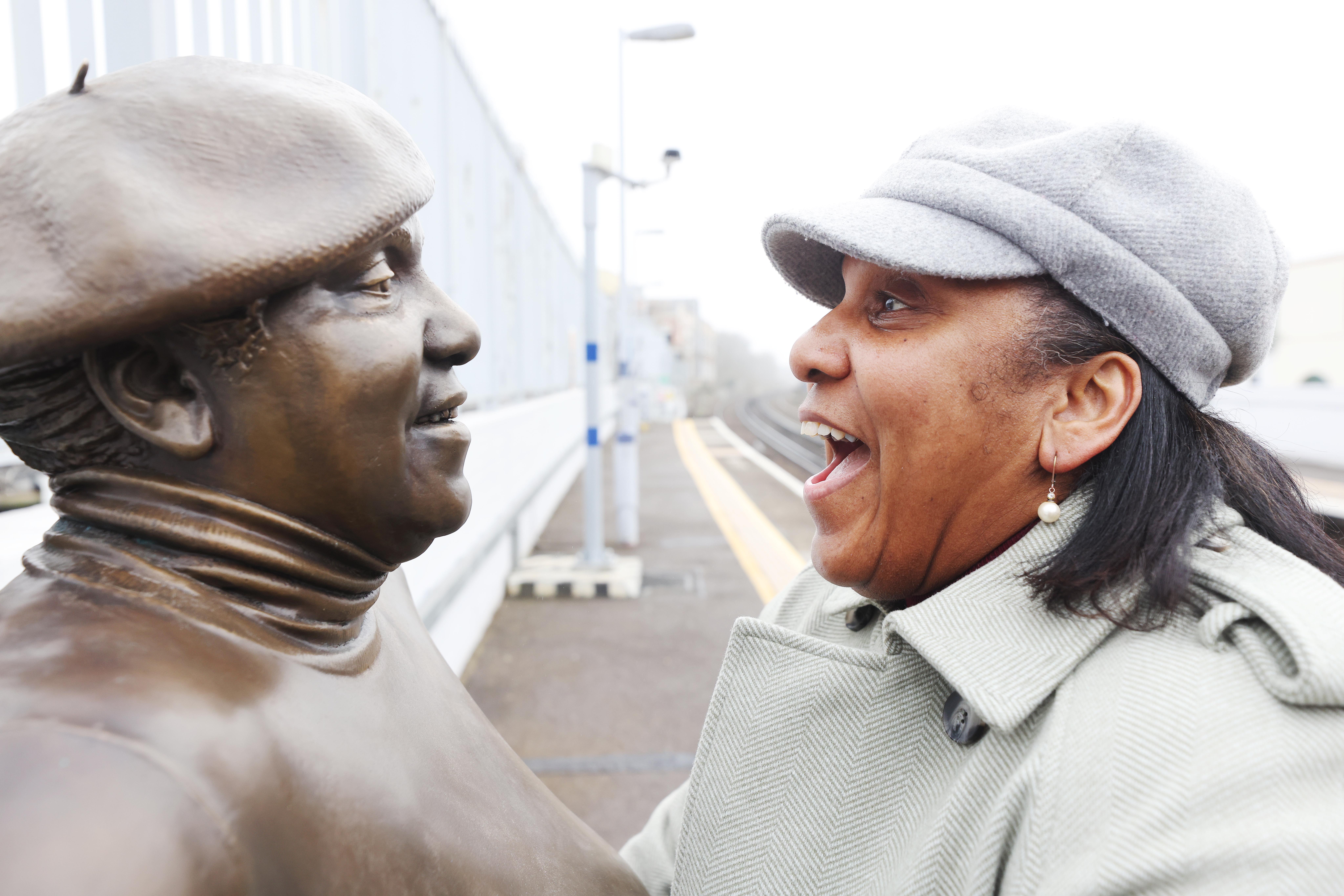 The new sculpture, known as ‘Joy II’, now stands on the opposite platform to ‘Joy’, facing her 26-year-old self. Entitled ‘Platforms Piece – The Return’, the creation of the new figure saw former Brixton resident Joy Battick, aged 62, reunited with artist Kevin Atherton, now aged 72.