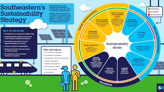 Rail is one of the most environmentally friendly ways to travel, and Southeastern is working to driving this further, diverting 99% of waste from landfill, increasing recycling and this year publishing its first Circular Economy Plan, setting out how it will reduce the impact of resources needed to operate our railway.