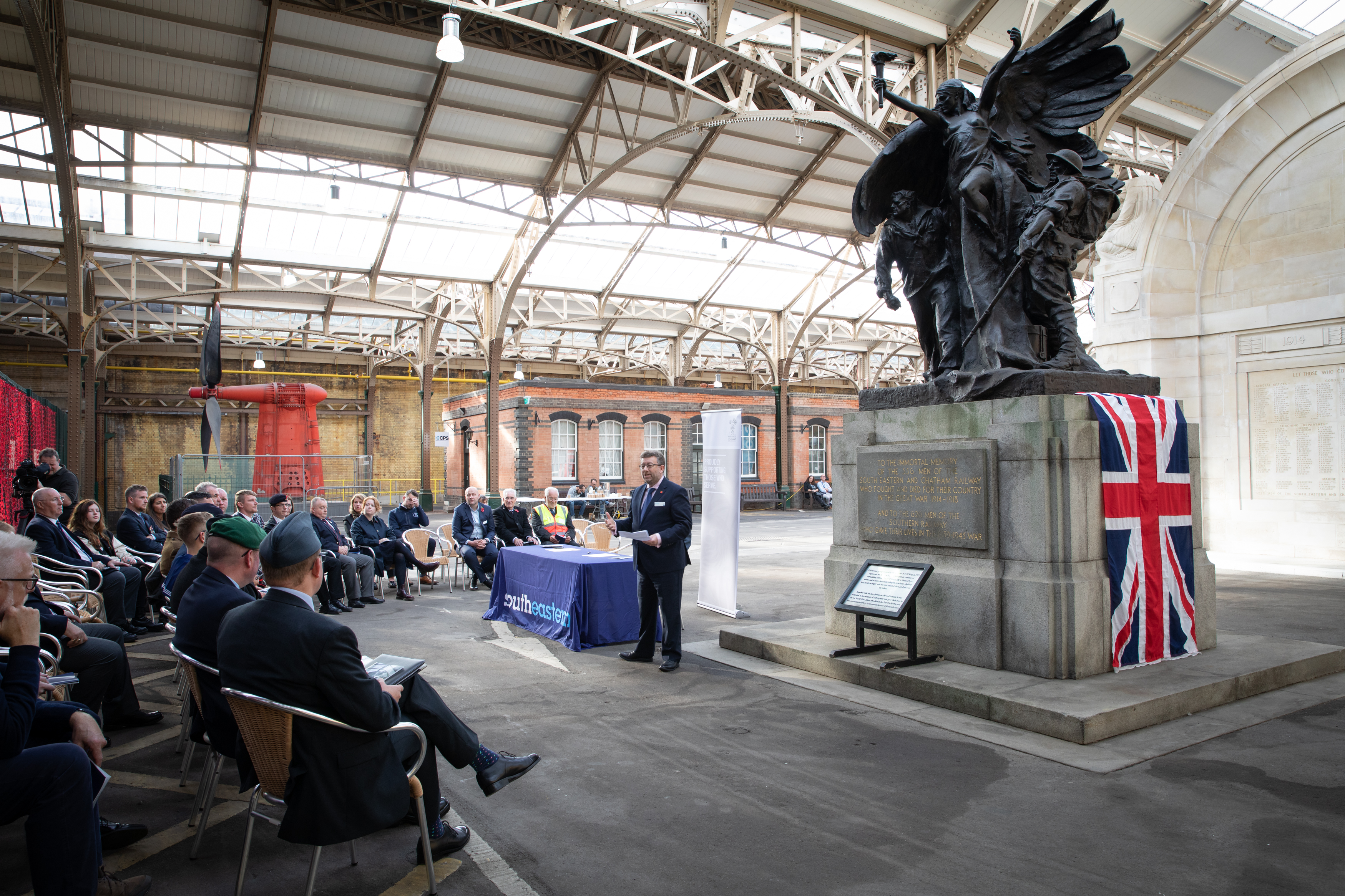 The signing of the Armed Forces Covenant by Southeastern, which serves London, Kent and East Sussex, coincided with the rededicating of the South Eastern & Chatham Railway War Memorial. The service was held on Friday 28 October and marked a century to the day since it was unveiled in 1922, was conducted by the Port of Dover’s Padre Reverend David Slater.