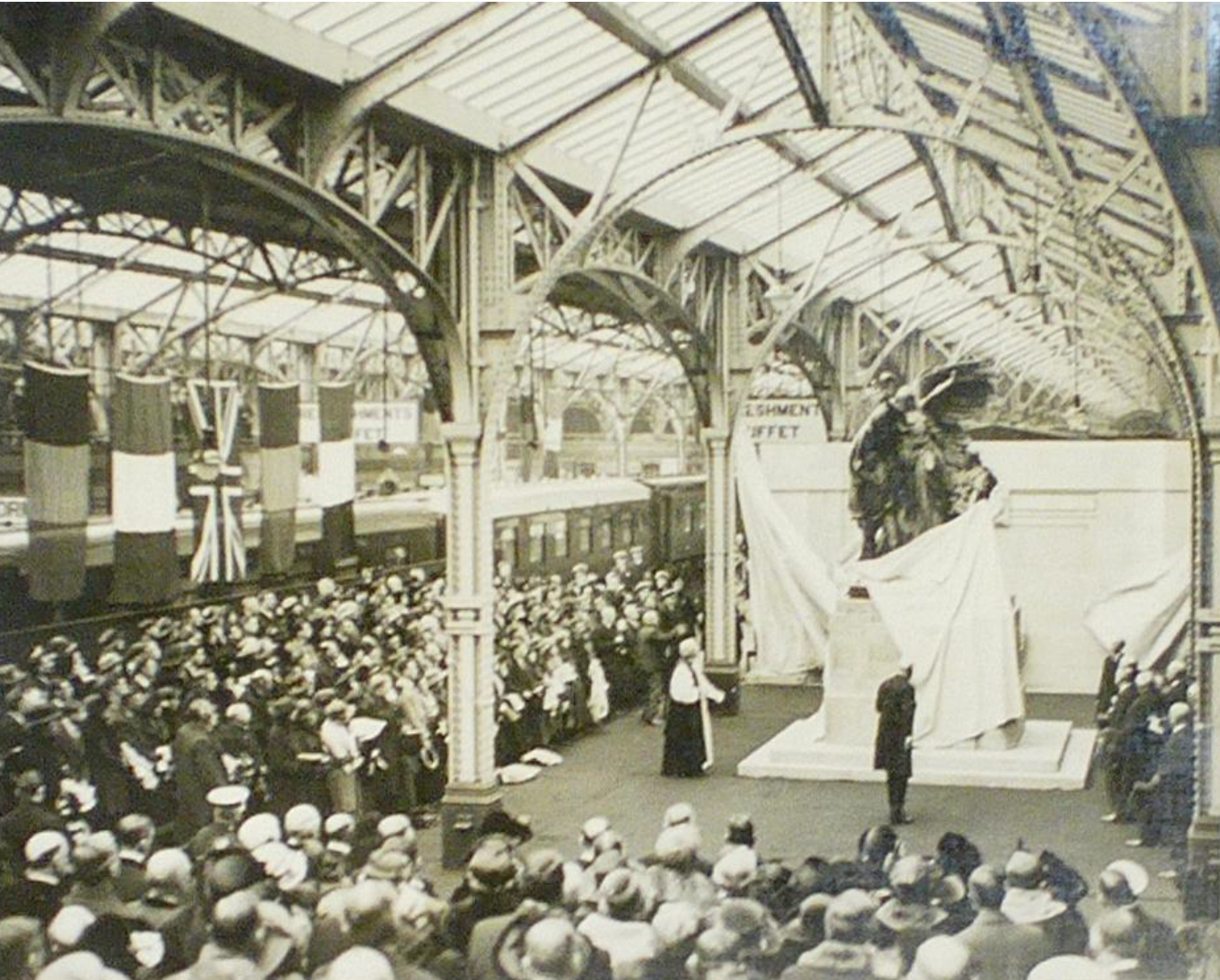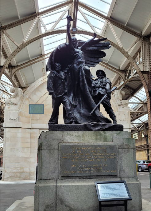 The bronze memorial depicts ‘the figure of victory with wings battered in the conflict, but still holding the torch of truth’, and commemorates the 556 railway employees who lost their lives in the Great War, and the 682 who died during World War II.