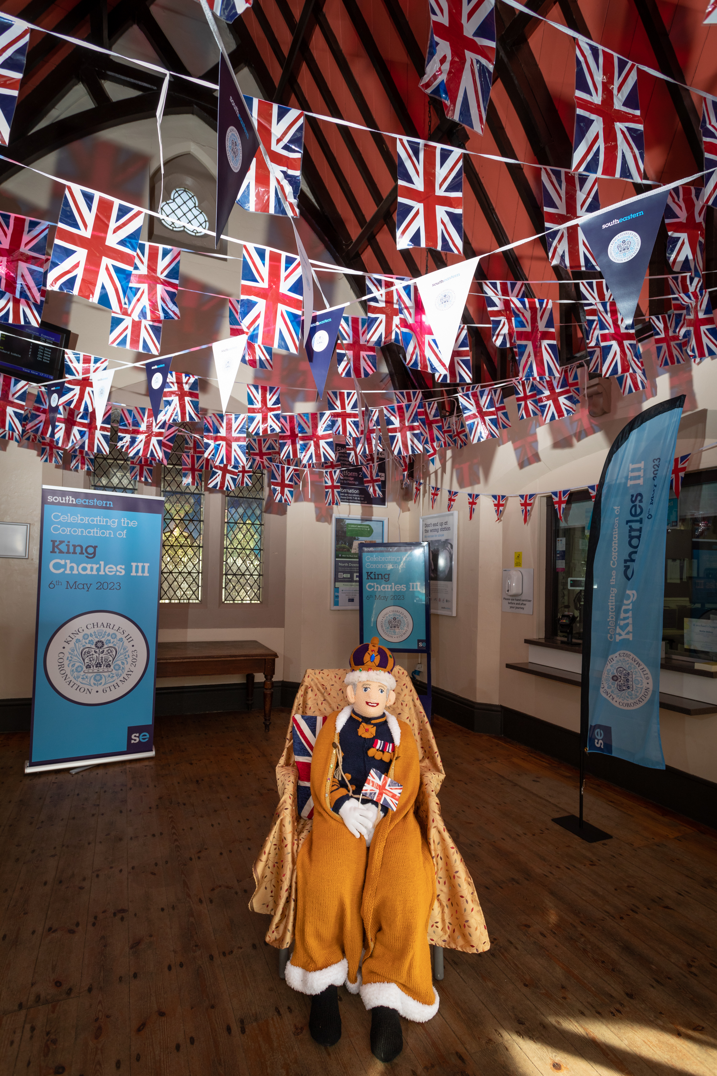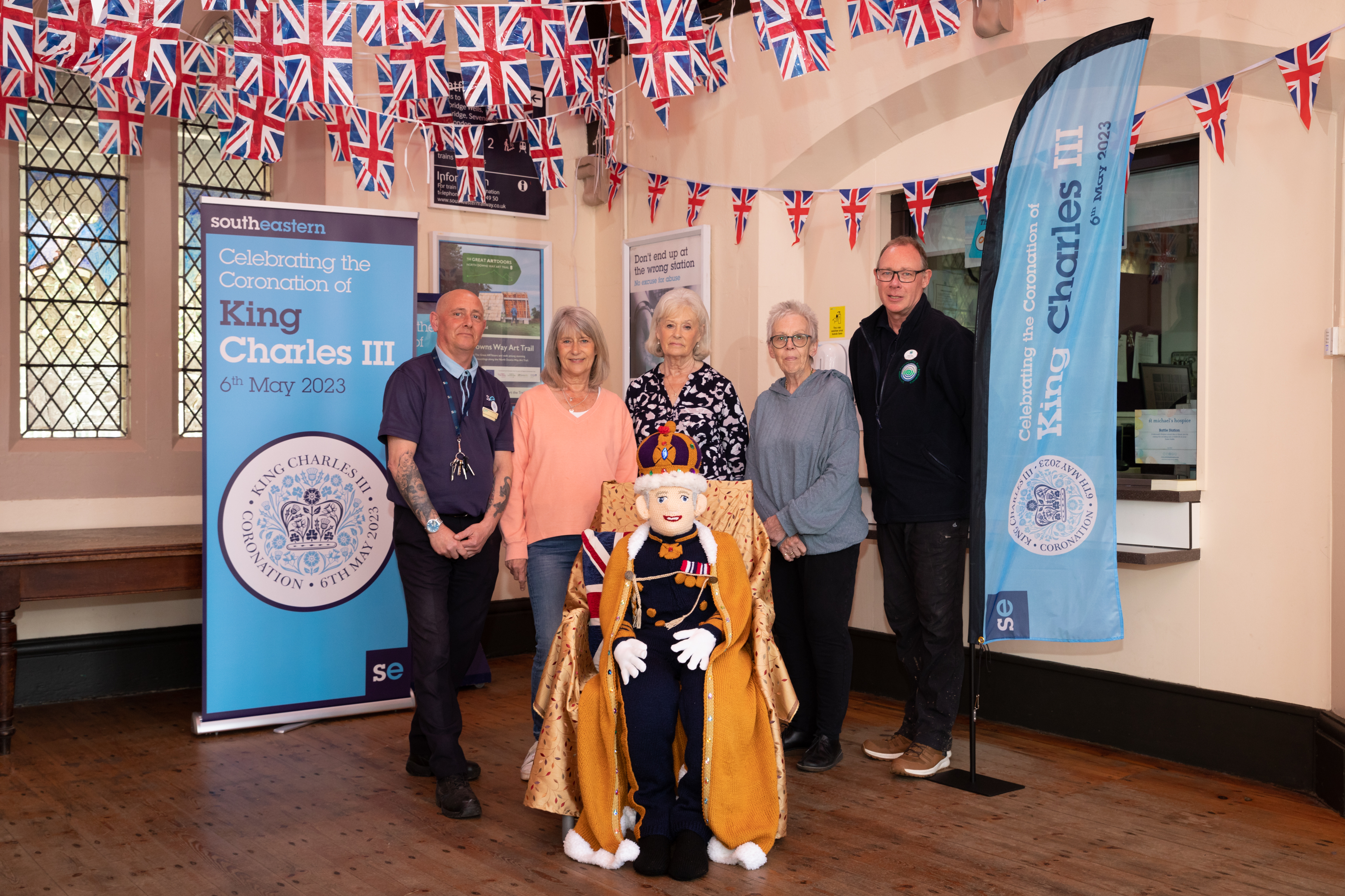 To mark King Charles III’s Coronation this coming Saturday some of our stations will be delivering Coronation cheer. Local communities have worked with Southeastern colleagues across various stations to prepare various activites, events and decorations over the three day celebration, including a knitted King, giveaways, activity packs, life size cut-outs of the King for photo opportunities. The knitted King's final destination will be at Tunbridge Wells Station where he will be until the end of Bank Holiday Monday.