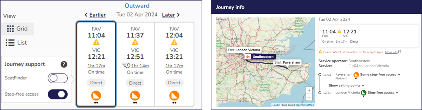 Step free journey planning - website